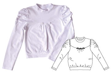 средней длины, "О"образного силуэта с притачным поясом по низу, длинные рукава с объемной сборкой по окату; воротник - стойка; сборка от кокетки переда с декоративными цветами