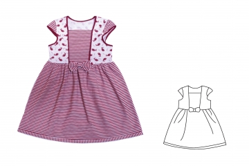 комбинированное, расширенного силуэта, перед с отрезными боковыми вставками украшен бантом, с рукавами -крылышками, юбка присборена.